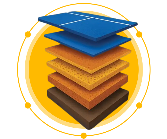 Our 8-layer cushioned synthetic acrylic courts are engineered to international standards, providing an optimal balance of player comfort, consistent ball bounce, and exceptional durability.